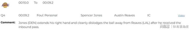 让我们将时光回溯至第四节尾声,彼时距离比赛结束仅剩9.2秒,湖人队以113比116的微弱劣势落后。就在这之际,斯宾塞·琼斯展现出了他敏锐的防守嗅觉与迅捷的身手。当里夫斯住界外发球,正欲组织进攻之时,琼斯犹如猎豹出击,伸出右手,以一种近乎艺术般的动作,干净利落地将球从里夫斯手中拍落。然而,令人诧异的是,当值裁判却吹响了哨声,判定琼斯犯规,并慷慨地赐予里夫斯两次宝贵的罚球机会。这,无疑是一次误判,一次对比赛公平性造成重大影响的误判。