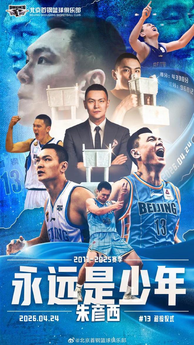 北京时间4月24日,在北京常规赛收官战对阵吉林的比赛,北京在中场为队史功勋球员朱彦西举办退役仪式。朱彦西命中968记三分,成为北京队史三分王,曾经帮助北京夺得3冠。