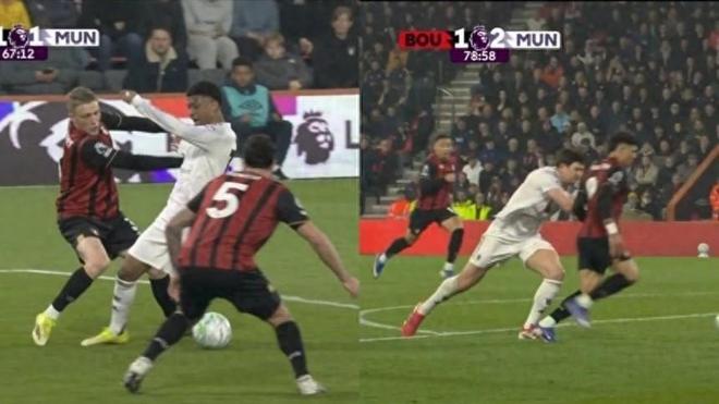 比赛的转折点出现在第67分钟。就在伯恩茅斯扳平比分前几秒,曼联边锋阿马德·迪亚洛突入禁区,在与对方后卫阿德里安·特鲁弗特的身体接触后倒地。然而,当值主裁并未鸣哨判罚点球。紧接着,特鲁弗特参与了随后的进攻组织,并助攻瑞安·克里斯蒂破门,将比分改写为2-2。这一连串的判罚和进程让曼联球员愤怒不已,纷纷向裁判组表达不满。