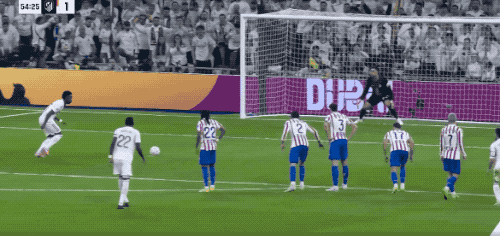 第72分钟,阿诺德送出精准长传,维尼修斯横向盘带的过程中兜射远角,皇马再次领先。