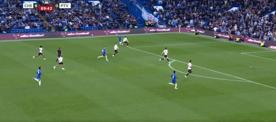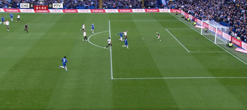 第82分钟,加纳乔中路打门击中立柱,埃斯特旺门前补射破门!切尔西6-0