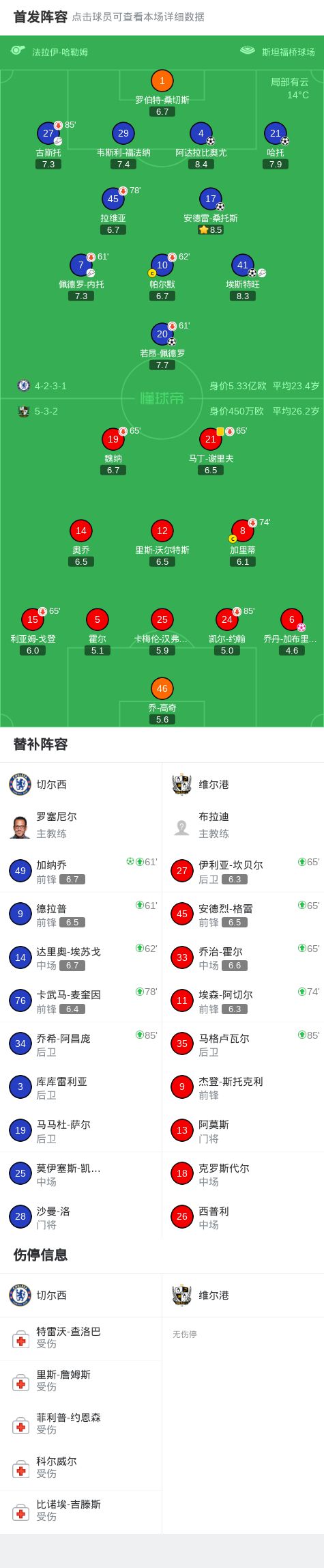 第42分钟,帕尔默补射造成加布里埃尔自摆乌龙!切尔西3-0领先维尔港