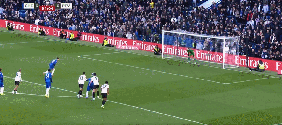 第90+2分钟,加纳乔禁区内造点,随后亲自主罚命中!切尔西7-0