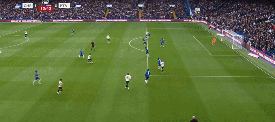 第57分钟,古斯托右路传中,阿达拉比奥尤头球破门!切尔西4-0