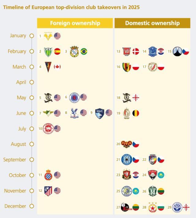 2025年,美资收购了9家欧洲顶级联赛俱乐部,势力版图进一步扩张。