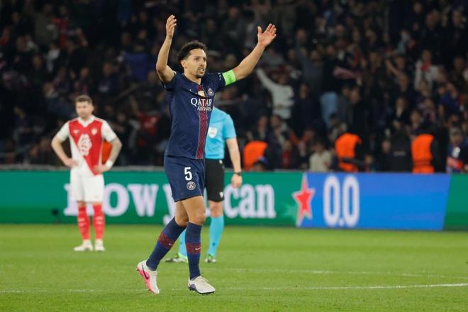 2月25日,巴黎圣日耳曼队球员马尔基尼奥斯在进球后庆祝。新华社