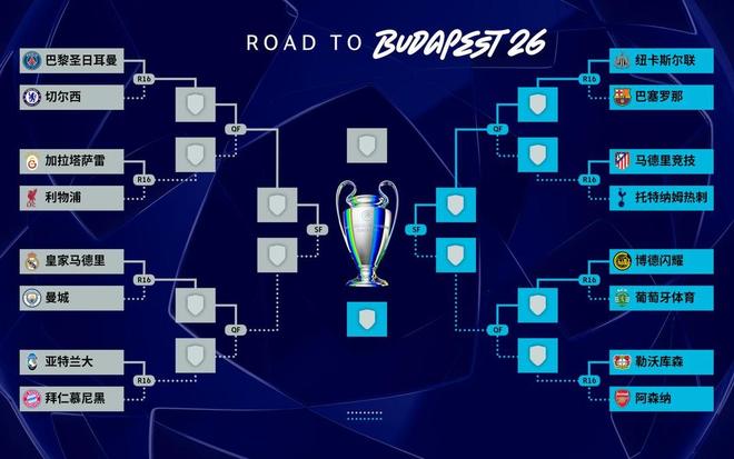 据央视体育消息,北京时间2月27日,2025-26赛季欧冠淘汰赛抽签结束,其中1/8决赛的对阵全部确定。