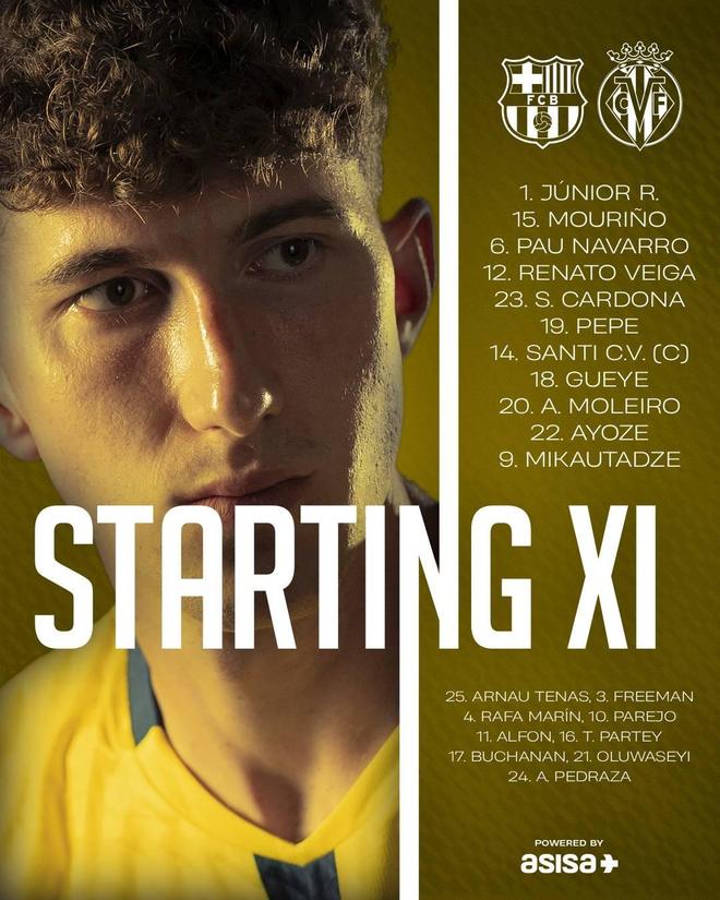 巴萨vs比利亚雷亚尔:亚马尔、拉菲尼亚首发,尼古拉-佩佩、阿约塞-佩雷斯出战
